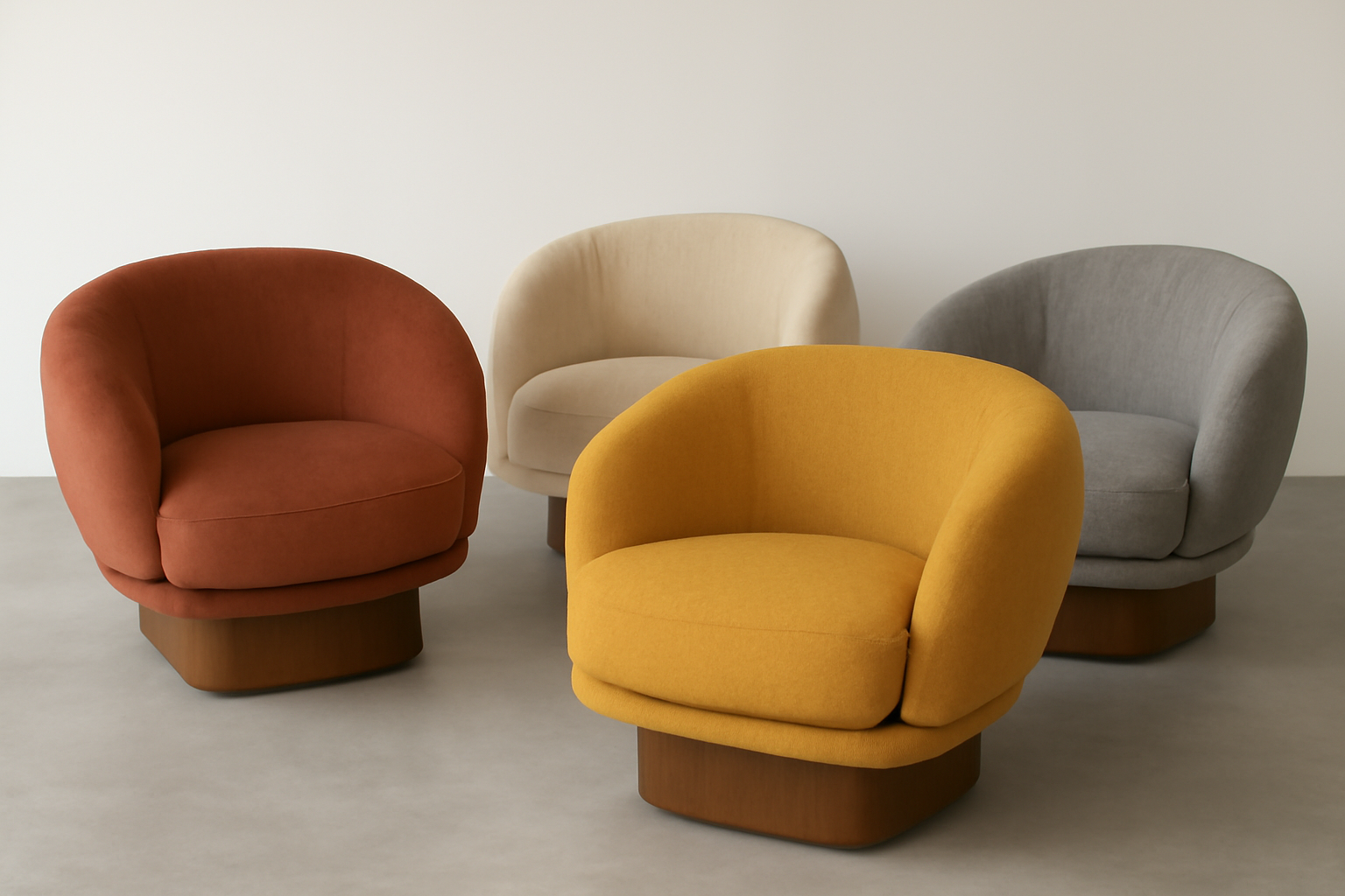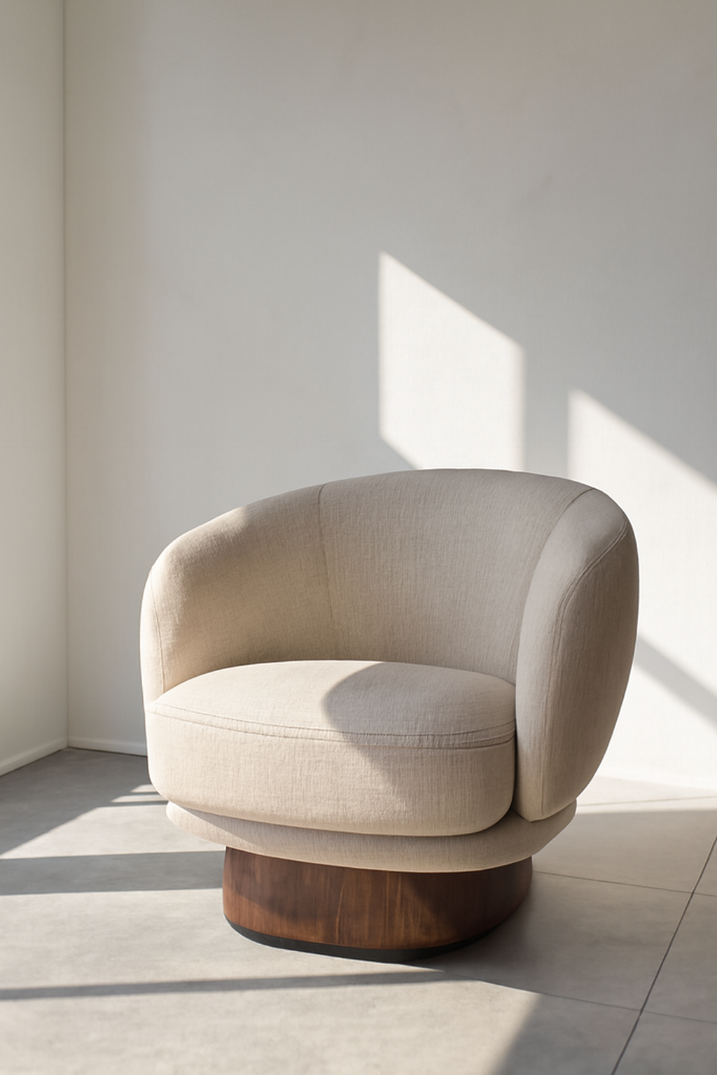 The Arvo Armchair blends modern sophistication with timeless comfort. Its rounded backrest and plush seat cushion provide an inviting seating experience, while the sturdy wooden base adds a touch of warmth and elegance. Upholstered in high-quality fabric, it makes a refined addition to living rooms, lounges, or reception spaces.