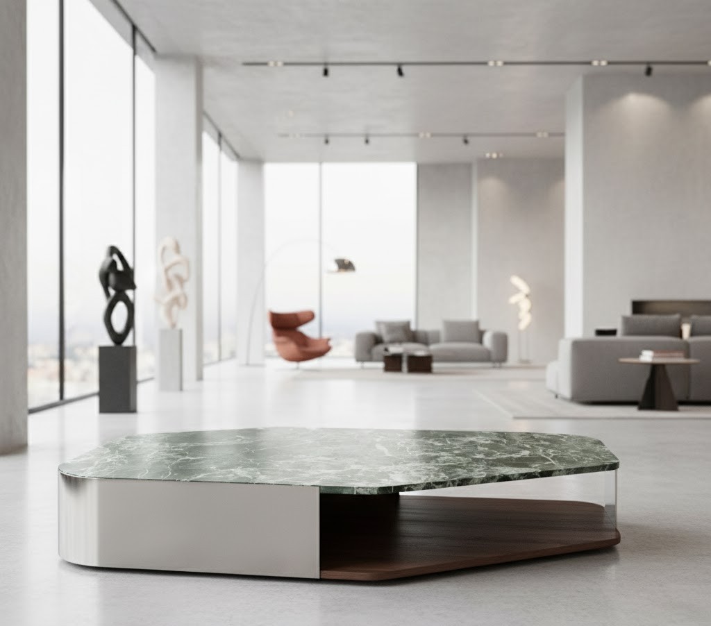 The Axis Table features a bold geometric form with softened edges and layered dimensions. Contemporary and versatile, it makes a refined focal point for modern interiors.