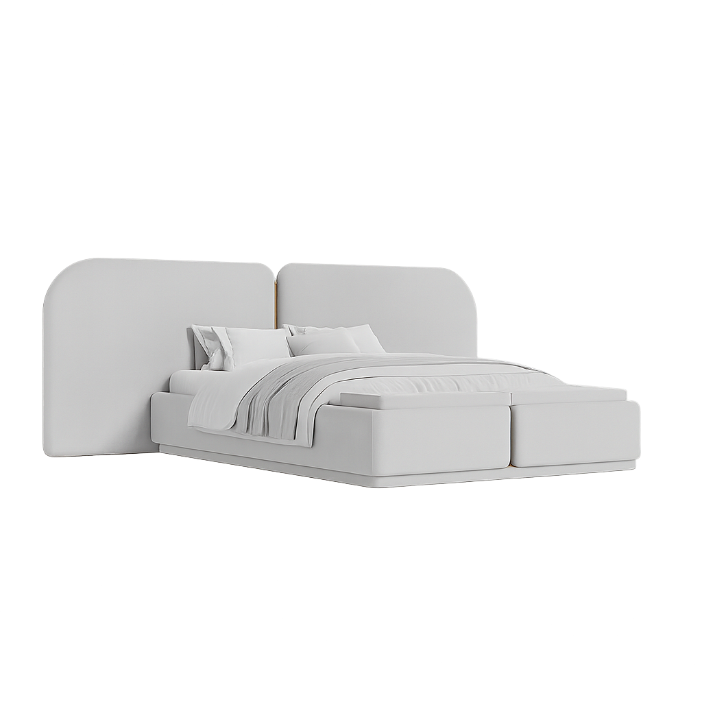 The Cloudline Bed is designed with soft, flowing lines that evoke the calm elegance of drifting clouds. Its fully upholstered frame and gently curved headboard create a sense of comfort and embrace, while the light-toned fabric adds a serene and luxurious touch to any bedroom. With its low-profile platform design, this bed blends modern minimalism with understated sophistication, making it the perfect choice for interiors that seek both comfort and refined style.