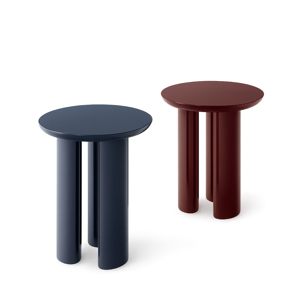 These modern side tables are defined by their bold geometric design. Each piece features a perfectly round top supported by multiple cylindrical legs, creating a strong architectural presence. The repeated column-like base gives them a sculptural quality, while the clean lines and balanced proportions make them versatile for contemporary interiors.