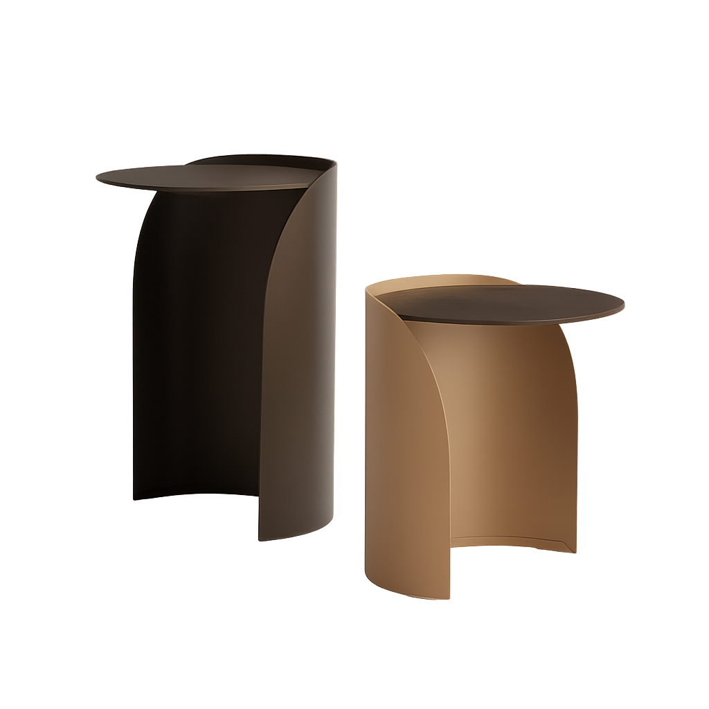 The Eira Side Table features a flowing, sculptural base that wraps elegantly beneath its circular top. Light and dynamic, it brings a sense of movement and refined design to any space.