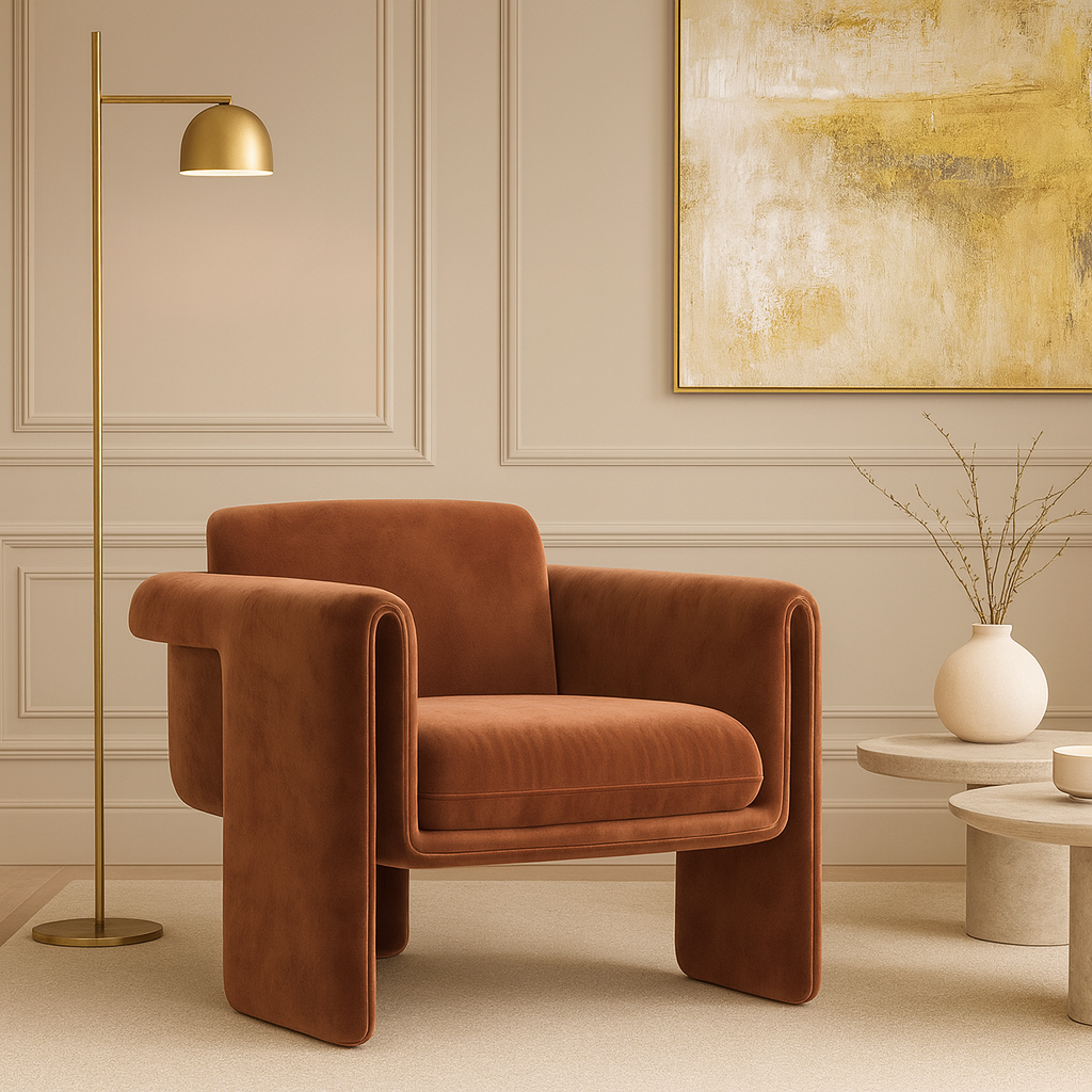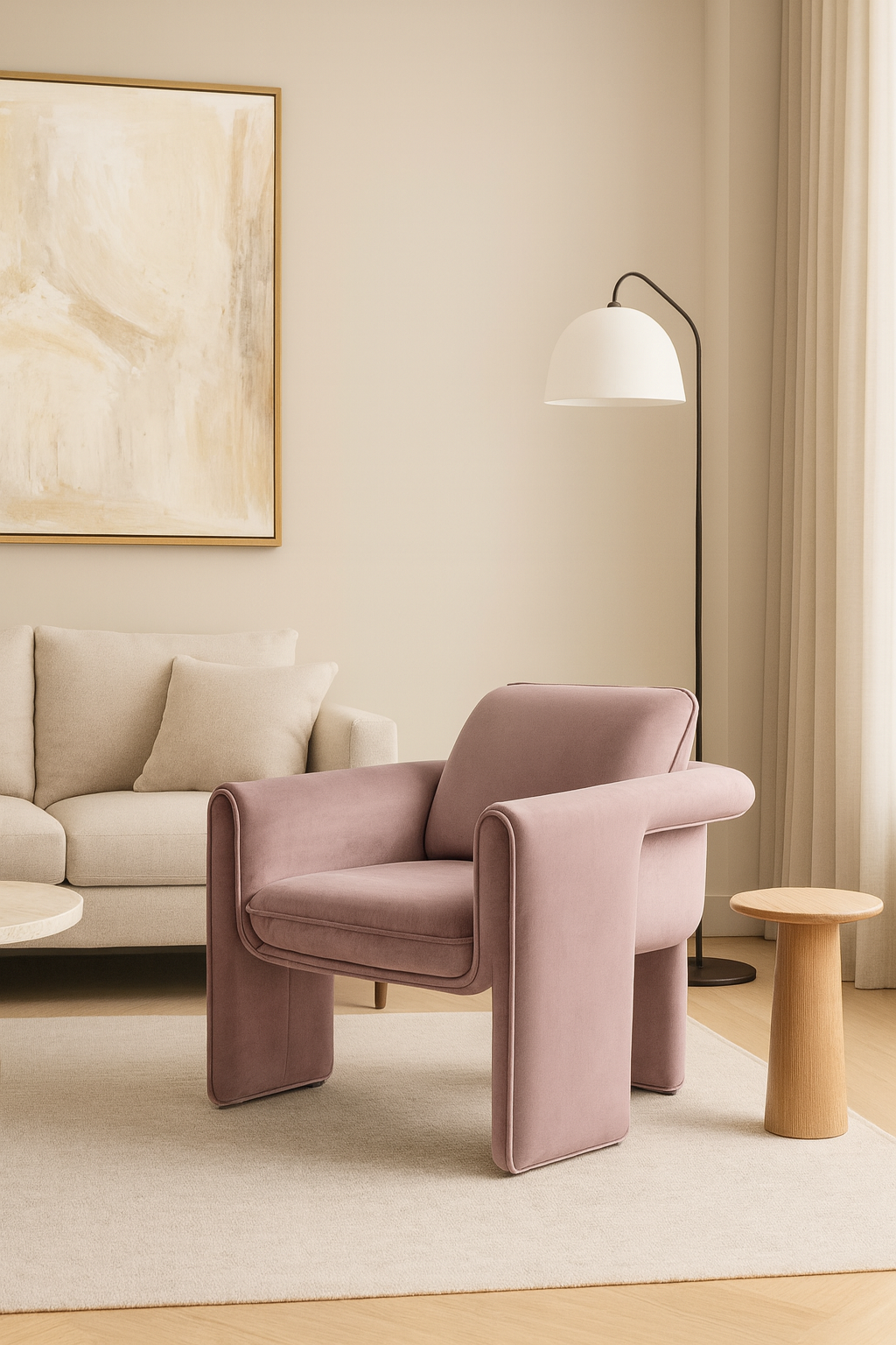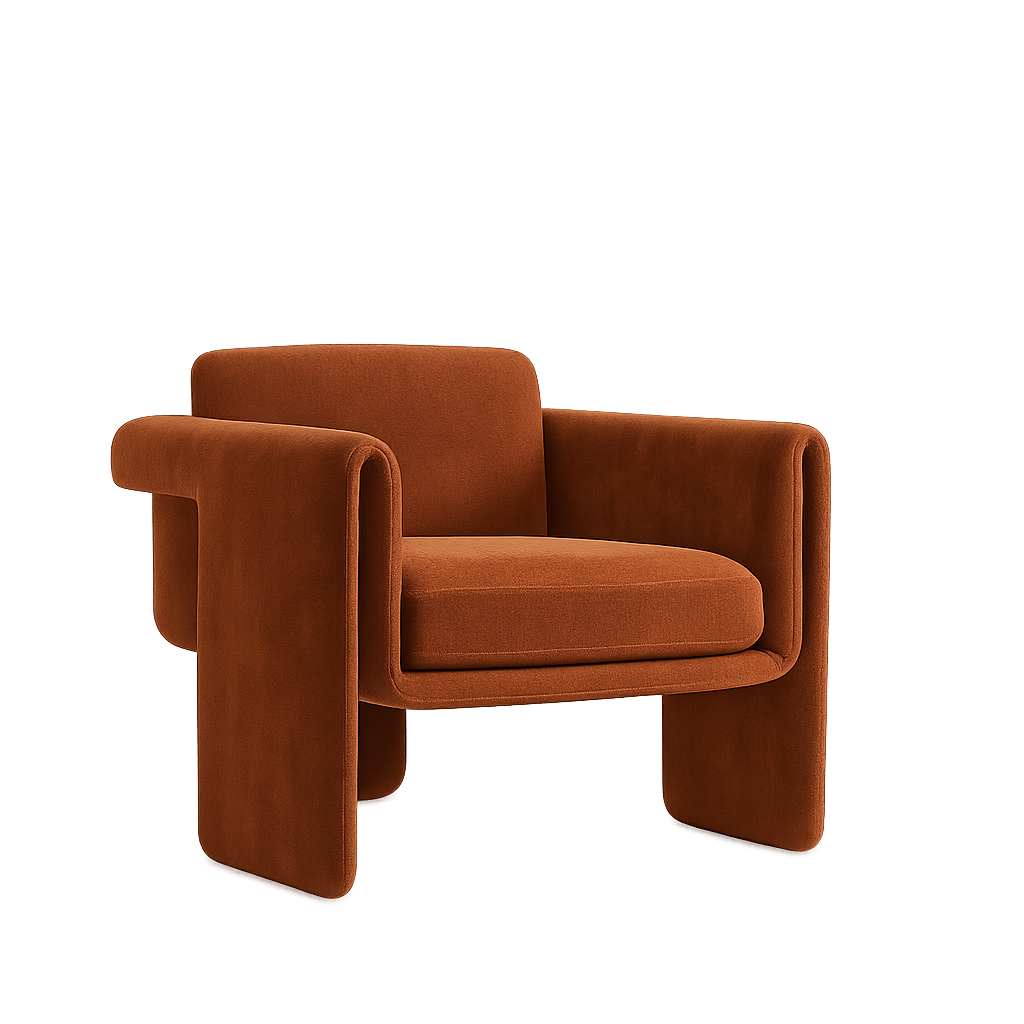 The Kole Armchair is a bold and sculptural piece that blends modern minimalism with architectural elegance. Defined by its striking U-shaped legs and wide, structured arms, this chair has a commanding presence while maintaining comfort with its plush cushioned seat. Upholstered in soft, high-quality fabric or velvet, the Kole Armchair is both a functional seat and a statement design piece. Perfect for contemporary living rooms, offices, or lounge areas, it adds sophistication and modern flair to any setting.