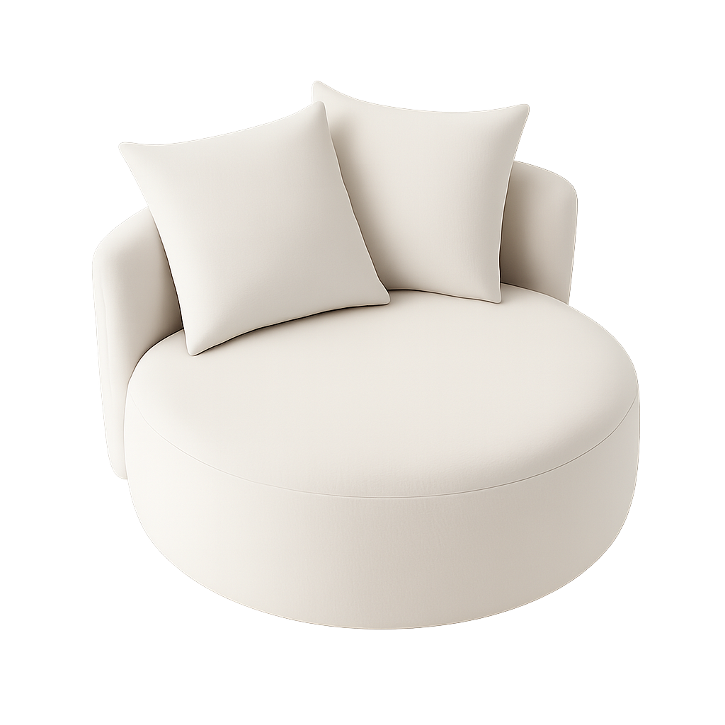 The Lunata Lounge Chair is a modern circular armchair designed for comfort and statement living. Its generous, round silhouette with plush cushioning and oversized back pillows makes it an inviting spot for lounging. The curved backrest and wide seat ensure maximum relaxation while maintaining a sleek, minimal aesthetic. Perfect for living rooms, reading corners, or stylish lounges, the Lunata adds a contemporary yet cozy touch to any interior.
