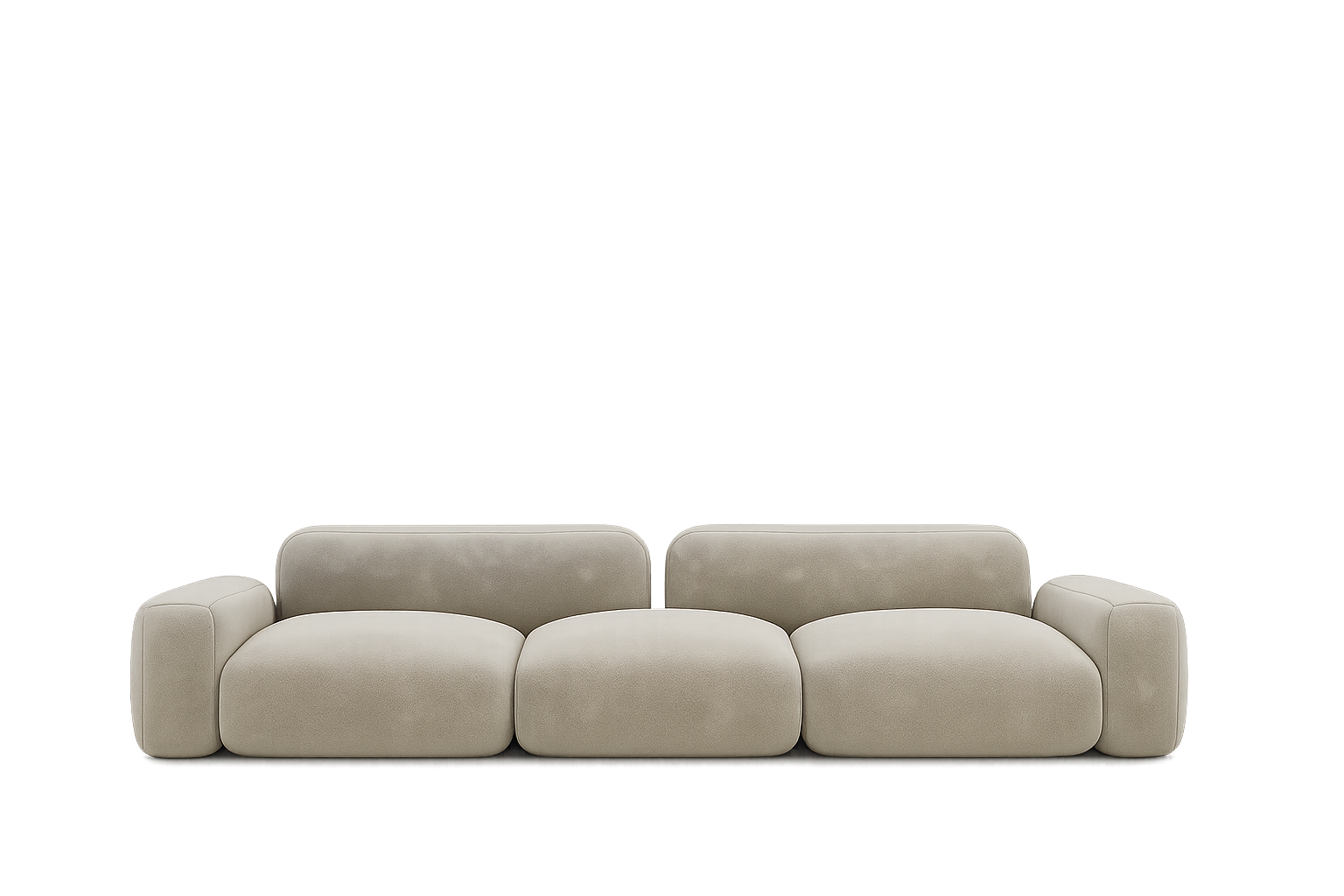 The Mellow Sofa is designed for effortless relaxation. Its soft geometry and pillowy volumes create a space that is both inviting and timeless.