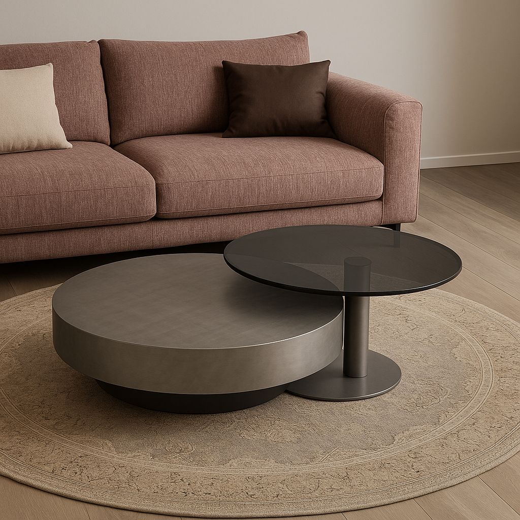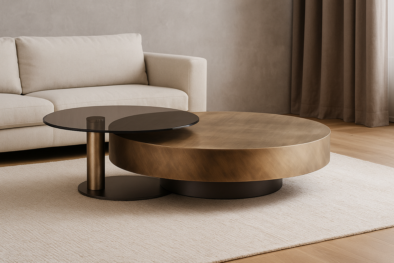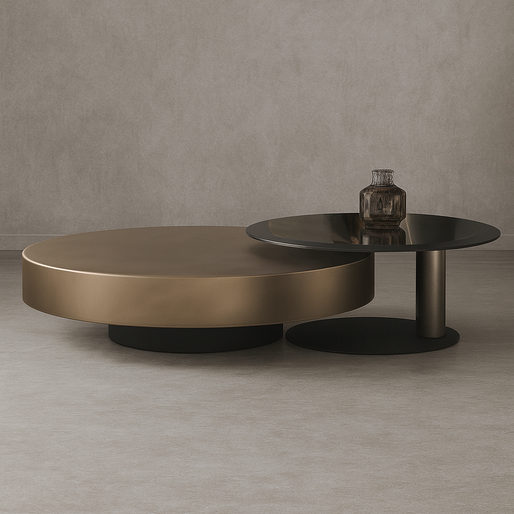 The Orbit Table blends intersecting circular forms into a bold sculptural design. Dynamic yet elegant, it creates a modern centerpiece with a sense of movement and balance.