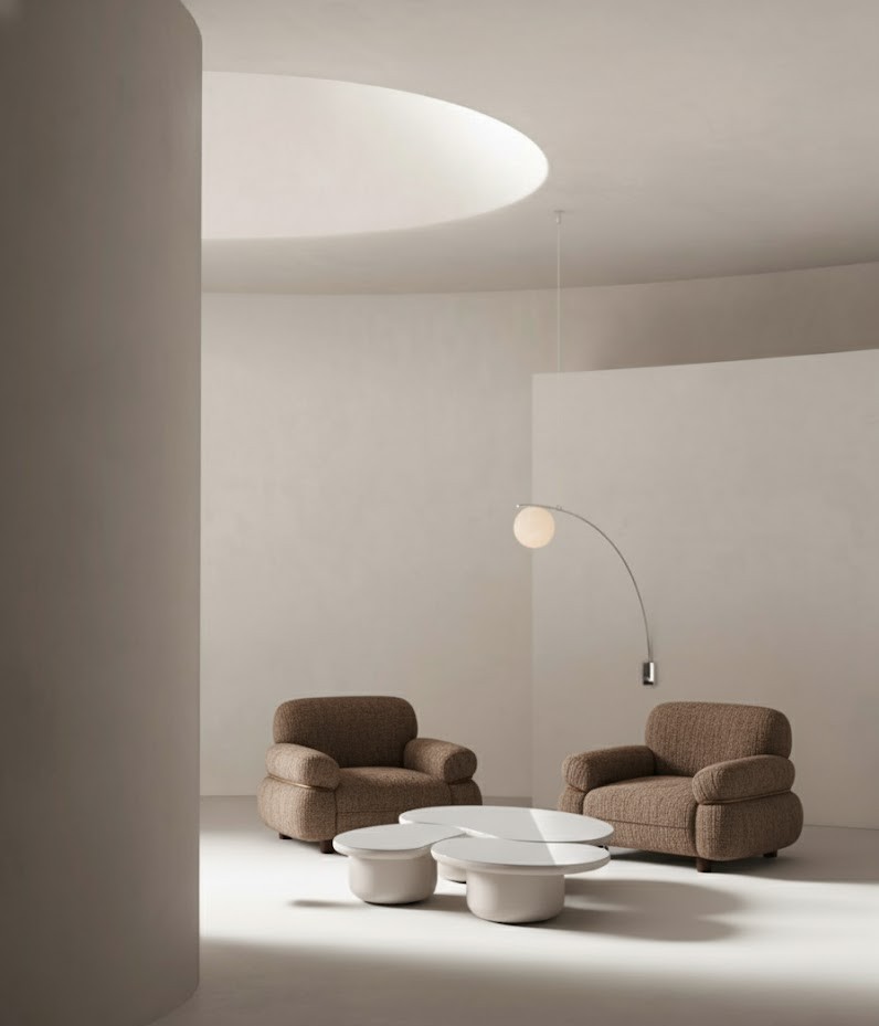 Ovalis is a sculptural expression of calm geometry. Its fluid, pebble-like forms flow into each other with effortless grace, creating a coffee table that feels both organic and futuristic. Designed for minimalist interiors that value quiet sophistication and visual balance.