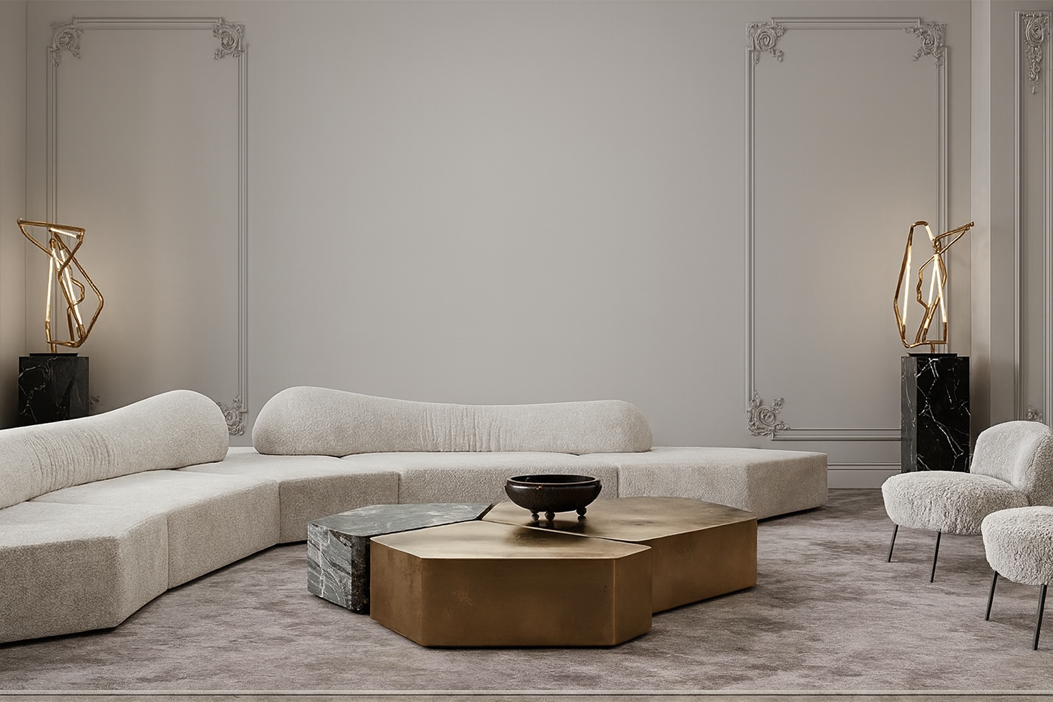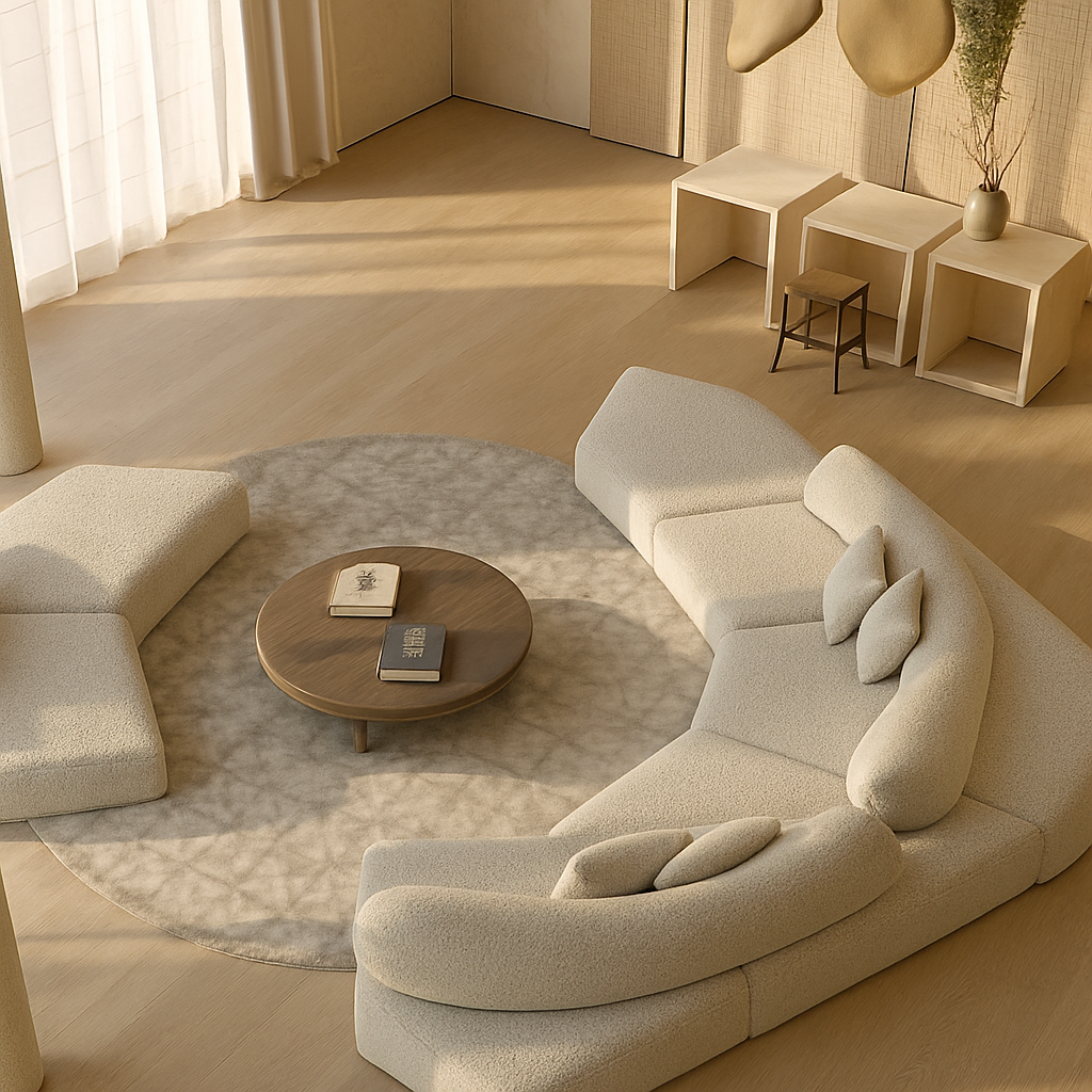 A sculptural modular sofa inspired by the organic forms of nature. Its fluid lines and generous volumes create a landscape of comfort, offering endless versatility for contemporary living spaces.